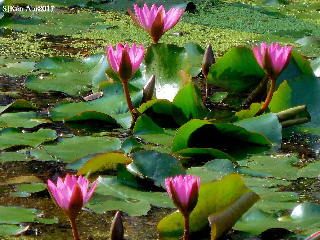 「台北市立圖書館北投分館」後方睡蓮池--- 春日午後清雅展姿,或單或雙或成群盡展迷人花顏!