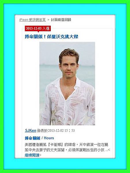 在這重新出發的一年,從痞客邦出發,在愛評網發光發熱,寫影評的路上有甘有苦,最大的伯樂,非愛評網與痞客邦莫屬,在一年中登上了9次痞客邦電影圈「圈內人推薦」頭條(註2),多次「本日熱門」,與47次愛評網首頁「熱門娛樂藝文」(http://www.ipeen.com.tw/)封面(註3),非常感謝兩家網站的小編群給予機會,讓更多朋友透過我的文字認識更多好電影。