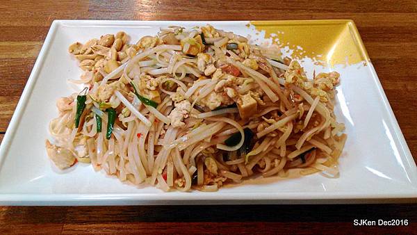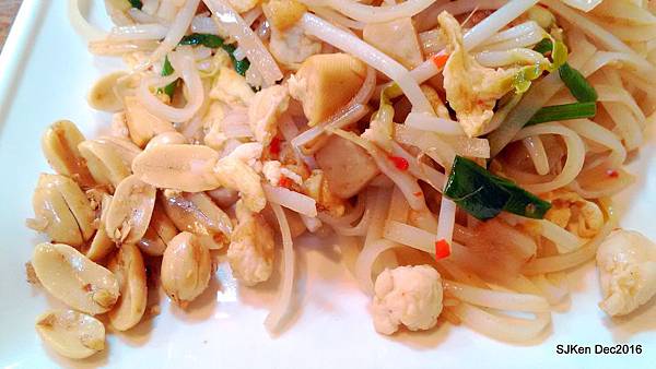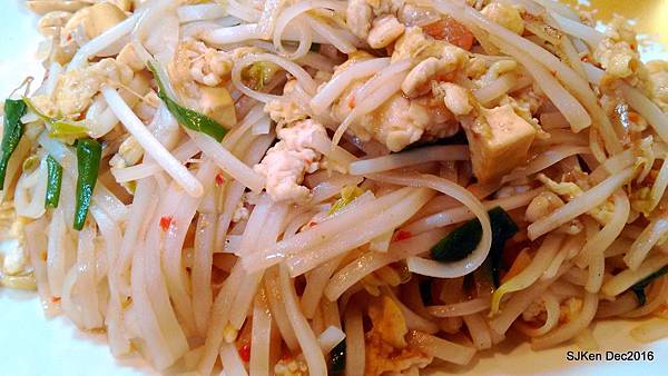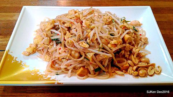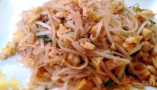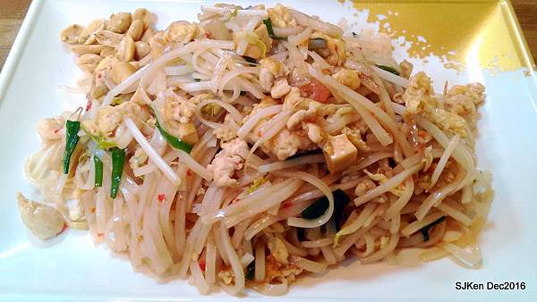 接著就品嚐這道「泰式炒河粉」(NT$100),簡單的豆芽、雞蛋、豬肉與花生佐河粉,一整盤色香味俱全,份量剛剛好! 第一次前往品嚐感受很不錯,下回去還可以點選其它種類的餐點!