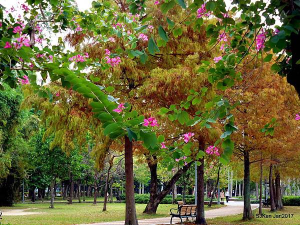 隸屬臺北市政府工務局公園路燈工程管理處管轄的台北大安森林公園,於1994年3月29日正式對外開放至今,一轉眼也過了22年,當年光禿禿的公園,如今綠蔭處處,多樣不同的樹種相互爭豔,連這陣子全台瘋看的落羽松,也能在大安森林公園看見,雖然沒有桃園、宜蘭羅東那樣大規模的盛景,但贏在位於台北市中心,交通方便,對於沒有交通工具或是不方便登高涉水的老人家,搭乘捷運淡水信義線,在大安森林公園站一出站就能看見這設施完善,佔地寬廣達25.894公頃的城市桃花源。