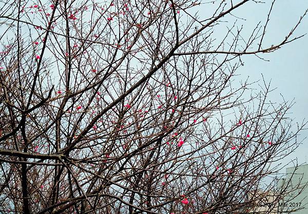 隔了半個多月再次前往台北東湖的樂活公園,2月下旬一區盛開的寒櫻已經開始落花,綠葉紛紛長出,目前看去就是粉紅花朵與綠蔭交錯的美景,依舊吸引了不少人前來賞花。