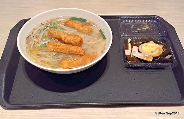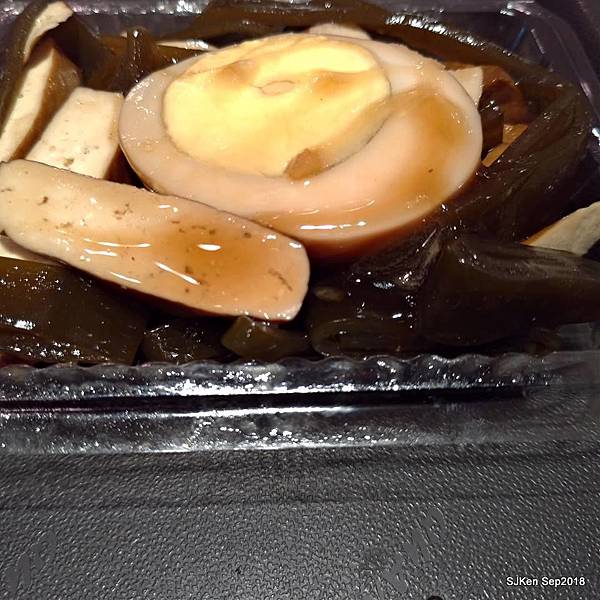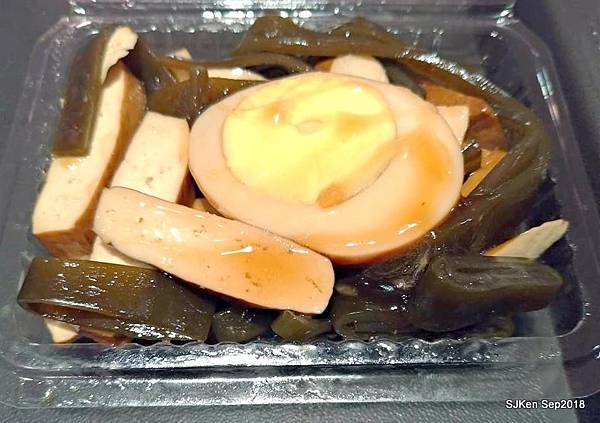首先品嚐的是「小菜組合」(滷蛋、海帶與豆乾,NT$30),都是常見的小菜,沒甚麼特別的,說不上好吃也不至於難吃,就很一般的滋味。