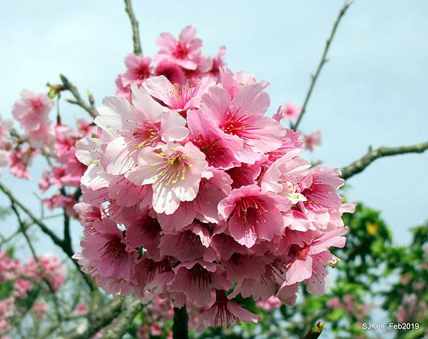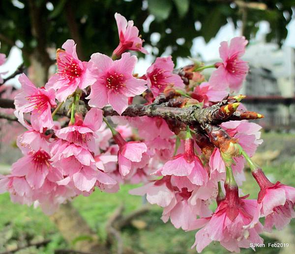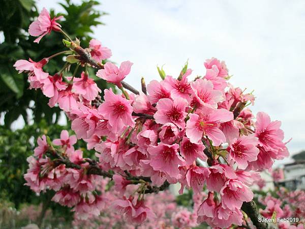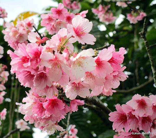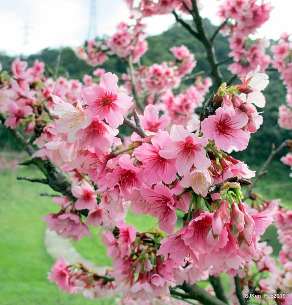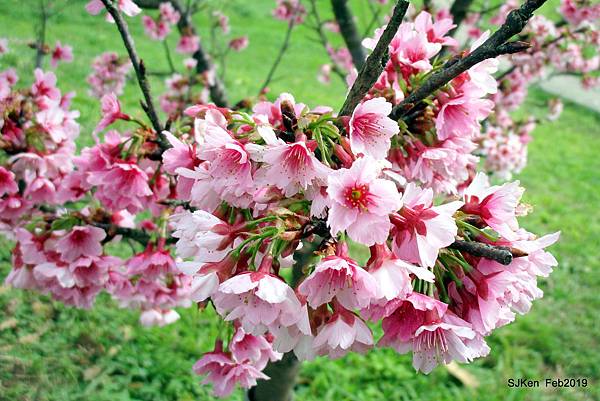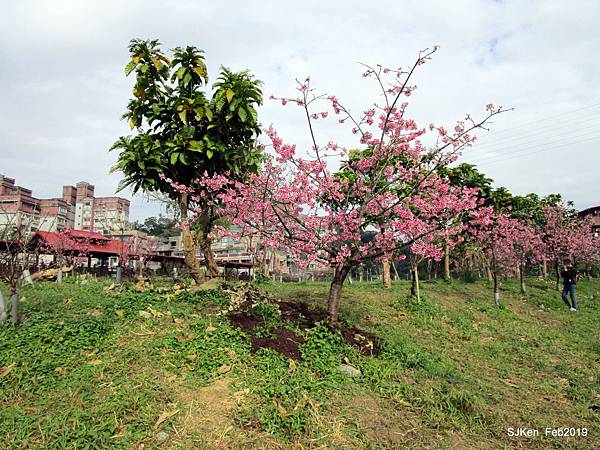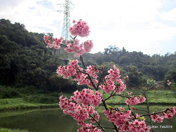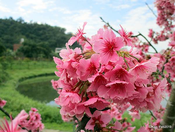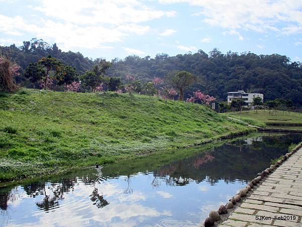 生態水池的另一側,則可看到一整片種了寒櫻的山坡,盛放的寒櫻吸引了不少賞花旅人就近拍下花容的倩影,少了一堆不懂賞花只為了與花合拍醜照的喧鬧觀光客,整個空間顯得寧靜而清幽。
