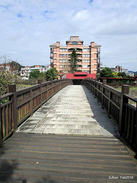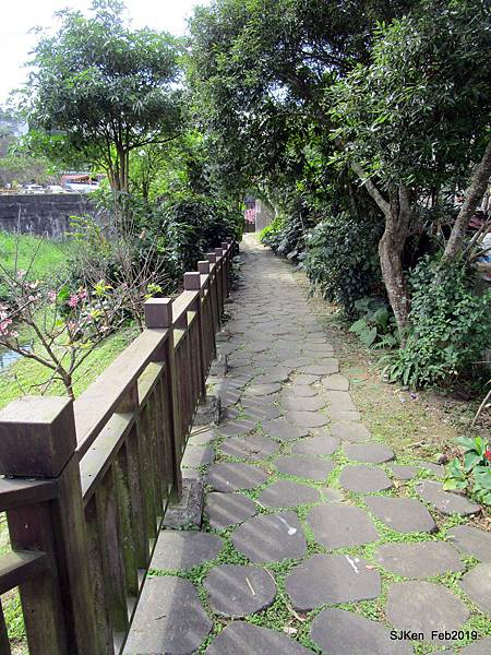 順著步道木棧橋往前走,沿途綠意盎然風景如畫,附近還有三層樓的建築人家,住在這美麗風景的旁邊,真是讓人羨慕。
