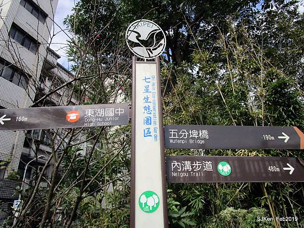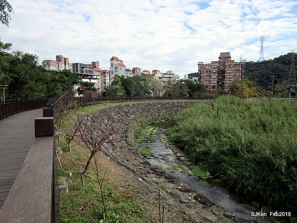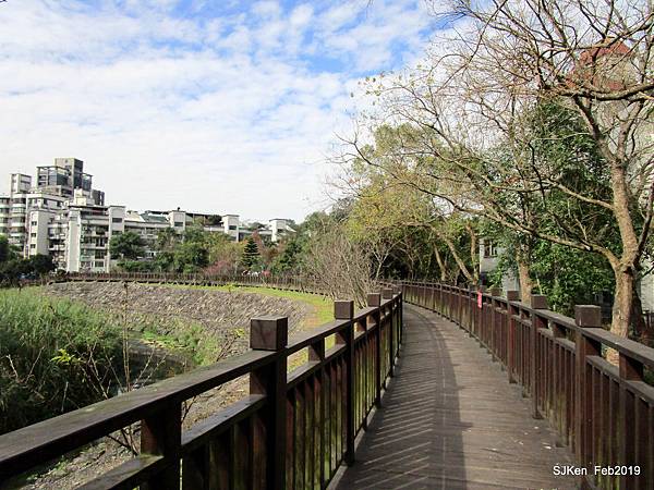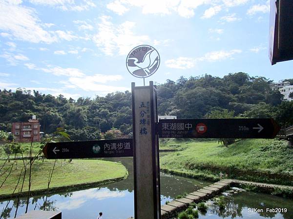 這篇首先要帶領大家前進內溝溪景觀生態步道中的「五分埤步道」,五分埤步道位於位於內湖、汐止交界,七星生態公園的後方及大龍港駕訓班的後方間的水域,是內溝溪河段中重要的滯洪區,為達調節洪水期間防洪效果及恢復生態環境,目前寒櫻已完全盛放,搭乘公車的朋友,可搭乘公車281/287/53/630/646等班次,在康湖隧道(白馬山莊)站下車,向右步行1分鐘,就可順著上方的架高木棧道或下方的無障礙水泥步道進入五分埤步道。