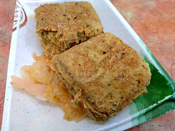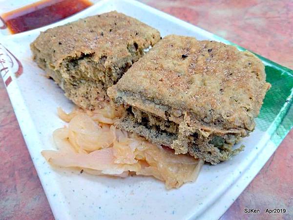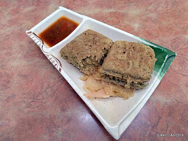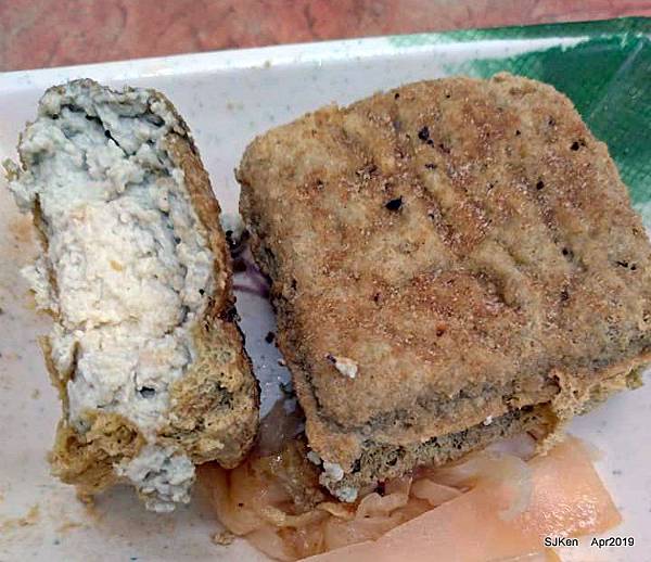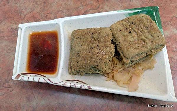 接著品嚐的是「招牌炸臭豆腐」(NT$65/一份兩個),還有自製的泡菜與醬汁,炸臭豆腐外脆內嫩,口感非常特別,入口咀嚼臭中帶香。