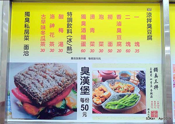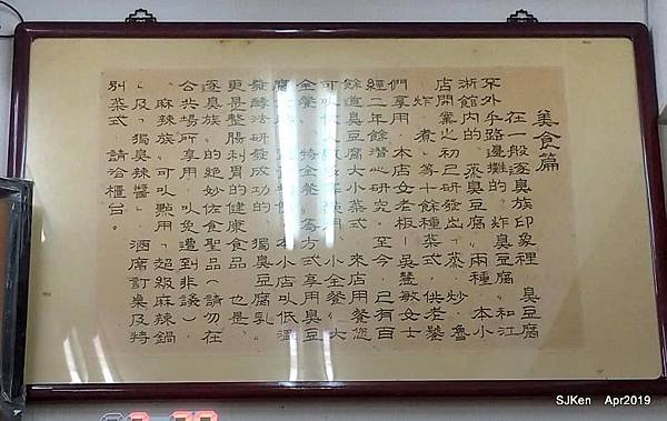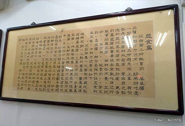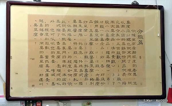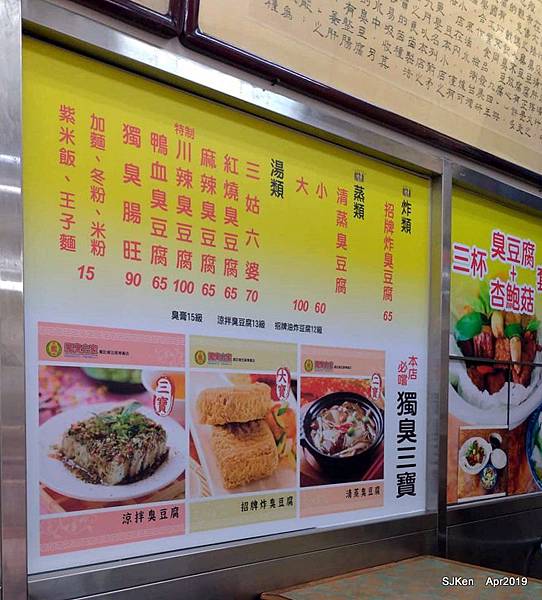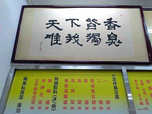 一如過往,點了一盤「招牌炸臭豆腐」(NT$65/一份兩個)、一盅大份的「清蒸臭豆腐」(NT$100),與一杯「洛神花茶」(NT$30/杯),一共NT$195,等待的時間,就瀏覽複習牆上一幅幅裱好的字,寫的都是跟臭豆腐有關的學問,讓人不虛此行。