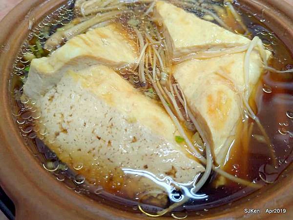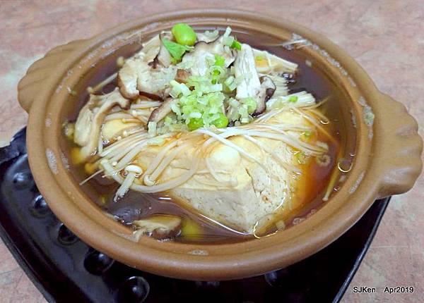 最後品嚐的是這盅大份的「清蒸臭豆腐」(NT$100),加上毛豆、薑絲、芹菜、金針菇與香菇,湯頭溫潤,蒸臭豆腐非常香嫩,一塊塊慢慢品嚐特別好吃,吃完餘韻飄香。