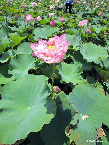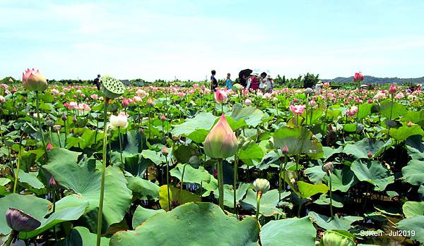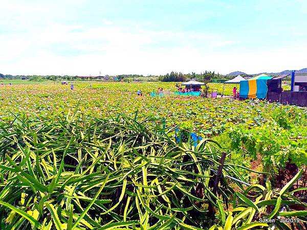 這片佔地3公廎的「黃老伯友善蓮花田」,花期期間對外免費開放參觀,正值暑假期間,是親子同遊拍照打卡的好去處,可於平日上午9時到下午6時,假日上午8時到下午6時,前來參觀,目前荷花盛產期,放眼望去就是滿滿或含苞、或半開、或盛放中的蓮花與牡丹蓮,田內除了栽種荷花與牡丹蓮外,還種植了甘藷與筊白筍,農家只有在門口販售切花、蓮子、蓮藕,蓮子水與蓮子凍,吸引了不少造訪的遊客購買!