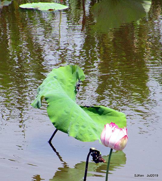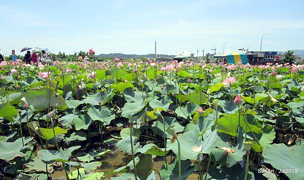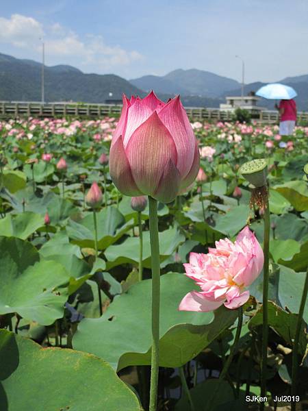 今年七月中旬,一早從台北車站搭乘皇家客運1717到金山玩,在金山郵局終點站下車後,轉搭829、862與863客運公車,在「清水路41巷」站下車,附近就是知名的新北市的清水濕地,從下車那一剎那開始,整個人就完全被大自然包覆,放眼望去藍天白雲、遠山綠田,還有一畦畦綠中映紅的荷花田,身在其中心曠神怡!